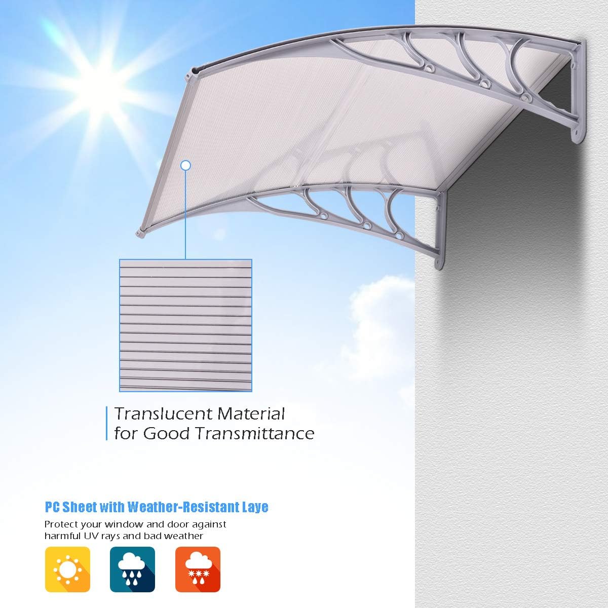 MATICO 58.5" Outdoor Clear Door Awning Patio Window Cover Polycarbonate Rain & Snow Protection, Modern Hollow Sheet with UV Protection Cover, Window Door Awning Canopy,Smoke Gray/Black-Edge